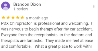 "This is the second accident that I've been in and as soon as my mom asked me where I wanted to go, I immediately told her I wanted to go to PDX Chiropractor because of their amazing help last time. This place is really is special, the staff is incredible. Everyone is very easy to talk to and understanding about everything. I'm just pretty much speechless when I talk about this place, much better than the first place I went to." -Mary D.